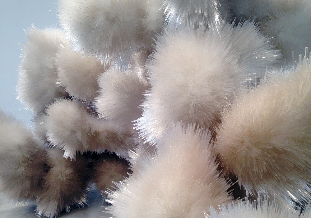 If I thought I was in another world in front of the first piece, the above work took me even further away from the reality of the New York streets I had just left. From the picture, it appears that the work can be likened to a collection of giant white puffballs, and I’m not going to argue with that. But, as I stood there this work that at first was foliage in a Dr. Seuss story turned into something more sinister. Made up of what appeared to be thousands of small acrylic rods that take on a spike-like quality, the work invaded into the bubble of the viewer. I began to feel uncomfortable in the space. Exploring the different facets of the work, my stomach began to feel almost queasy. Although I’m not quite sure if this is the normal reaction from a casual viewer, it made me realize that art has the power to make us feel, even sometimes feelings that we can’t quite put a name to.