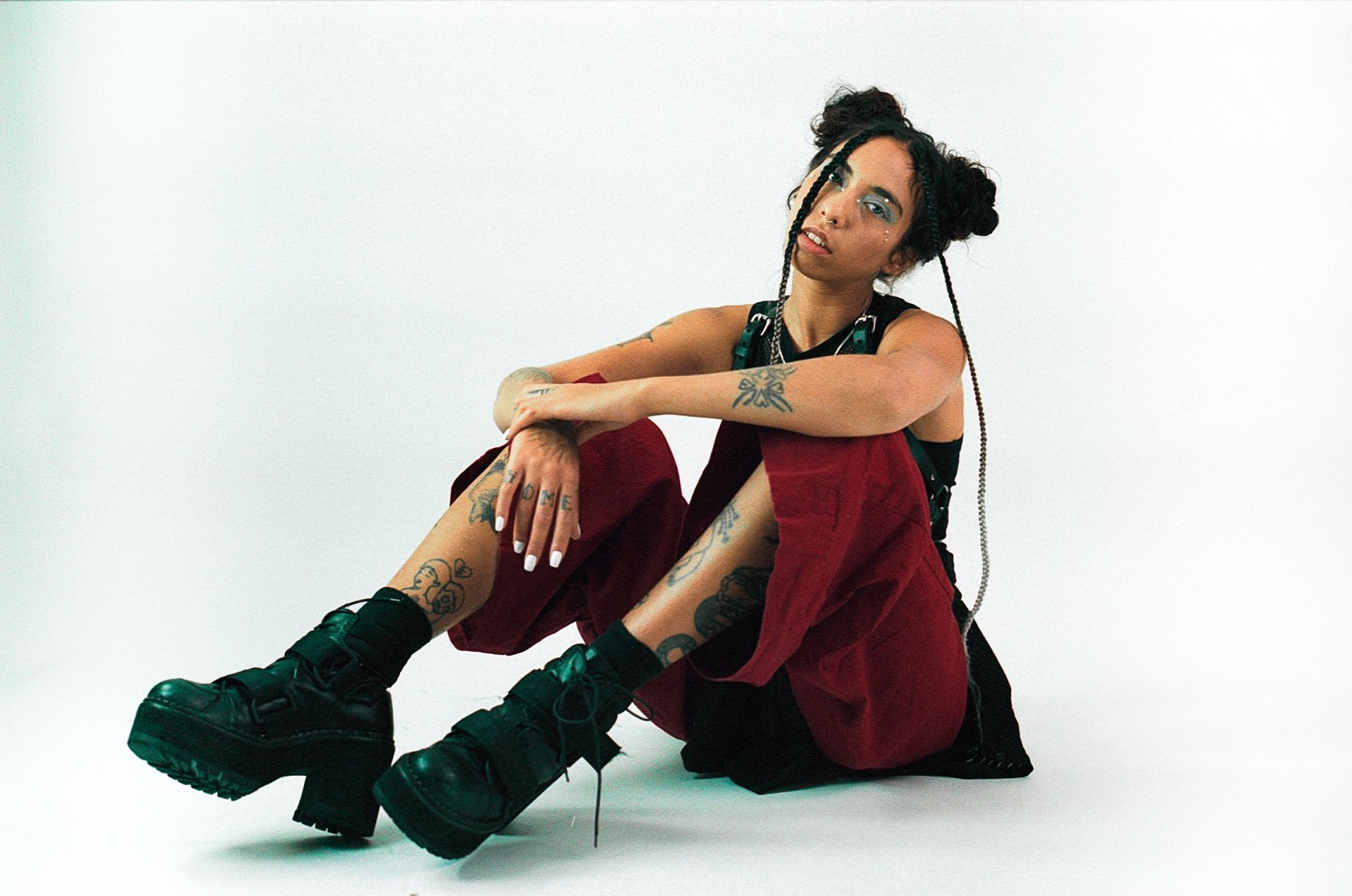 As she put more faith in her intuition, De Souza found a community unlike she’d ever known before. Abandoning the downcast indie scene she once ran in, she entered a new friend group that brought her into the light again. “We create safe spaces for people to be themselves. We try to spread joy and happiness wherever we are,” she gushes. The relationships she built with her new partners-in-crime transformed her soul as she reconnected with nature, her body, and herself—in many ways, Any Shape You Take wouldn’t have been the same without them. The pure love De Souza and her friends share with each other is a tangible force in the music video for the infectiously poppy and tenderly reassuring “Hold U,” where they throw a glittery dance party that ends in a huge cuddle puddle. “It’s the first time that I’ve felt held by other people,” she says. “They held space for me, and they continue to hold space for me as I change and grow.”