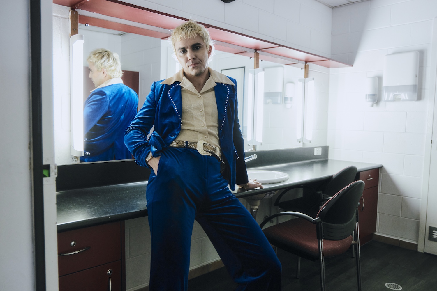 “The ‘Loki Horror Picture Show’ music video is an exploration of identity, mental health and the dangers of getting lost in the sauce when chasing your dreams,” Liddle explains. “This version of myself in a dying delusion of grandeur is a hyperbolic representation of the parts of ourselves we are willing to sacrifice and compromise in order to pursue a vision of success. We wanted to underpin the spectacle with a little bit of darkness to make clear that we’re not glorifying it, but investigating its absurdity. The device of the gunshot came from this place – to contrast the lightness of the song and create a sense of unease – however it was important for me to have the gunshot be off-camera, stylised and implied rather than shown in great detail, as depictions of gun violence are something that I know require great sensitivity.”