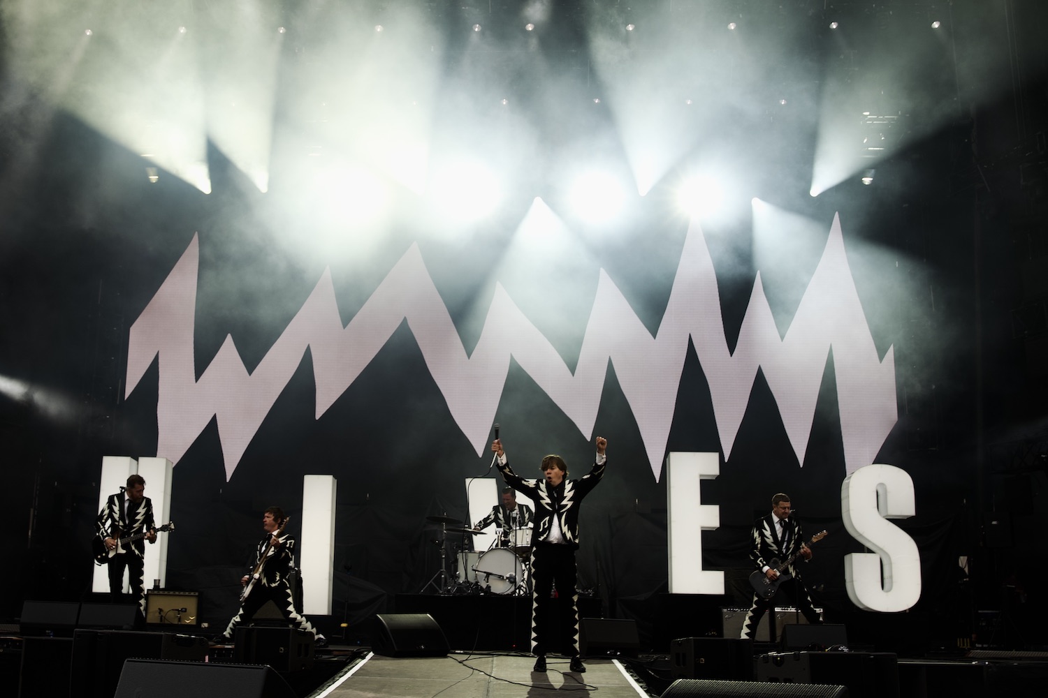 Swedish alt-rockers The Hives were quick to make names for and leave lasting impressions of themselves, entering wearing matching tuxedos adorned with white lightning bolts and music notes, running across a matching backdrop and giant letters spelling “HIVES” placed onstage. Frontman Howlin’ Pelle Alqvist delivered a nothing short of electrifying performance, swinging his microphone, reaching into the crowd, and commanding the growing audience to clap in sync with him onstage.