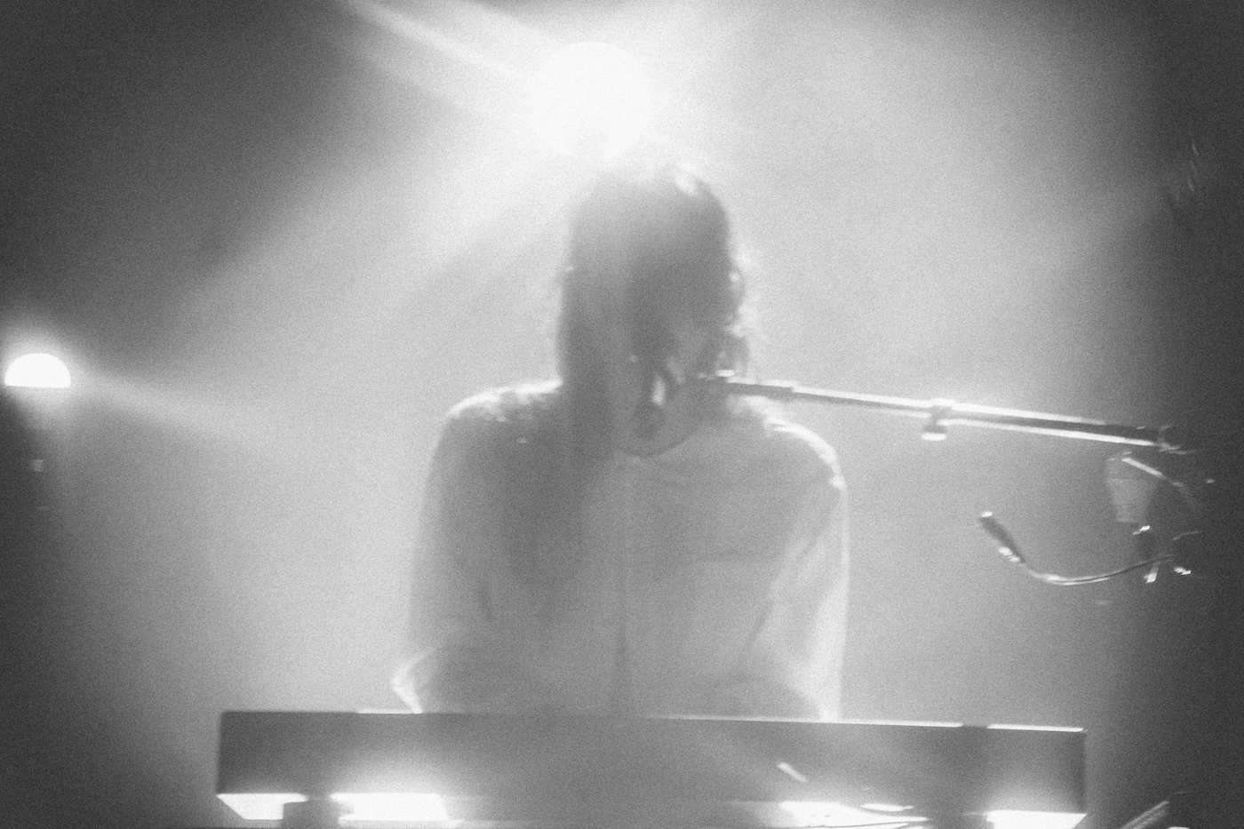 Abrams moves from guitar to piano for “Amelie.” The stage is dimly lit with floating light bulbs, creating an intimate atmosphere that allows the crowd to take in each word. She continues with a “Rockland” / “Will you cry?” mashup that is beautifully arranged. As she performs on through the back half of the set the crowd is now completely mesmerized. The sea of phones searching to film every move slowly start to disappear as it feels almost impossible to not live in the moment of this show. Through small breaks between powerful performances she discusses things like her excitement and nerves in joining Taylor Swift’s Eras tour, asking the crowd who will be with her during there as well. The answer? Almost everyone in the room.